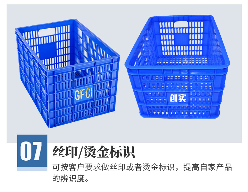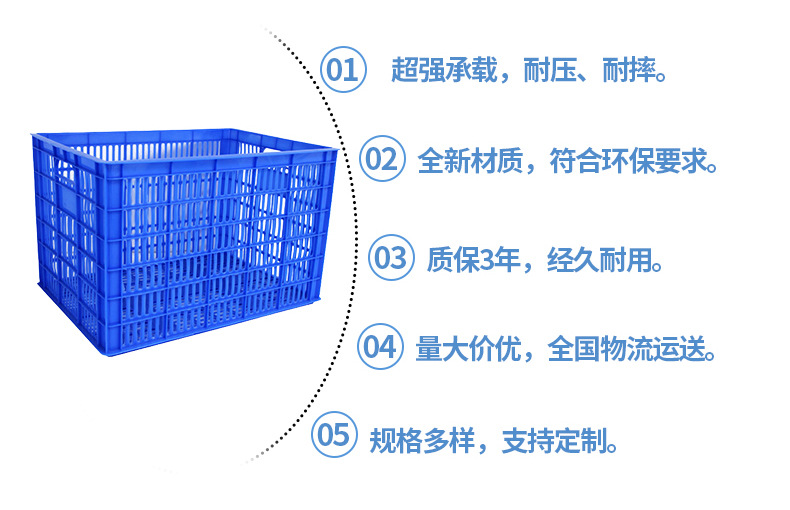 塑膠周轉(zhuǎn)筐廣東產(chǎn)地貨源藍色現(xiàn)貨多款尺寸水果蔬菜籮出口塑料周轉(zhuǎn)籮