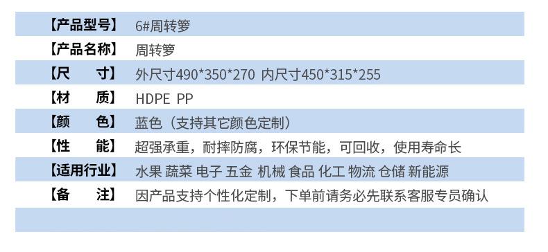 本店產(chǎn)品常規(guī)庫存為全新料藍色塑料托盤,周轉(zhuǎn)箱,周轉(zhuǎn)籮,化工桶,中空板材及部分高性價比黑色一次性出貨產(chǎn)品。如需要其他顏色請聯(lián)系客服對接處理。因產(chǎn)品規(guī)格較多,未能全部上至店鋪,如店中沒有您需要的規(guī)格尺寸也請聯(lián)系客服。希望能解決您的問題,我們竭誠為您服務!!!