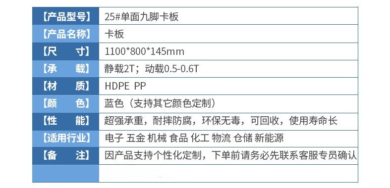 本店產(chǎn)品常規(guī)庫(kù)存為全新料藍(lán)色塑料托盤(pán),周轉(zhuǎn)箱,周轉(zhuǎn)籮,化工桶,中空板材及部分高性價(jià)比黑色一次性出貨產(chǎn)品。如需要其他顏色請(qǐng)聯(lián)系客服對(duì)接處理。因產(chǎn)品規(guī)格較多,未能全部上至店鋪,如店中沒(méi)有您需要的規(guī)格尺寸也請(qǐng)聯(lián)系客服。希望能解決您的問(wèn)題,我們竭誠(chéng)為您服務(wù)!!!