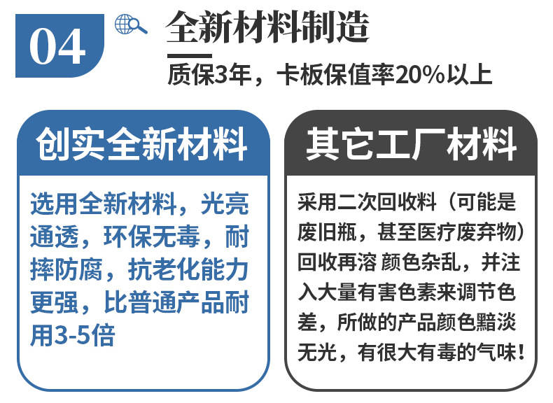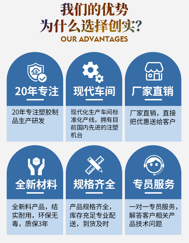 本店產(chǎn)品常規(guī)庫存為全新料藍(lán)色塑料托盤,周轉(zhuǎn)箱,周轉(zhuǎn)籮,化工桶,中空板材及部分高性價(jià)比黑色一次性出貨產(chǎn)品。如需要其他顏色請(qǐng)聯(lián)系客服對(duì)接處理。因產(chǎn)品規(guī)格較多,未能全部上至店鋪,如店中沒有您需要的規(guī)格尺寸也請(qǐng)聯(lián)系客服。希望能解決您的問題,我們竭誠(chéng)為您服務(wù)?。。?/strong>