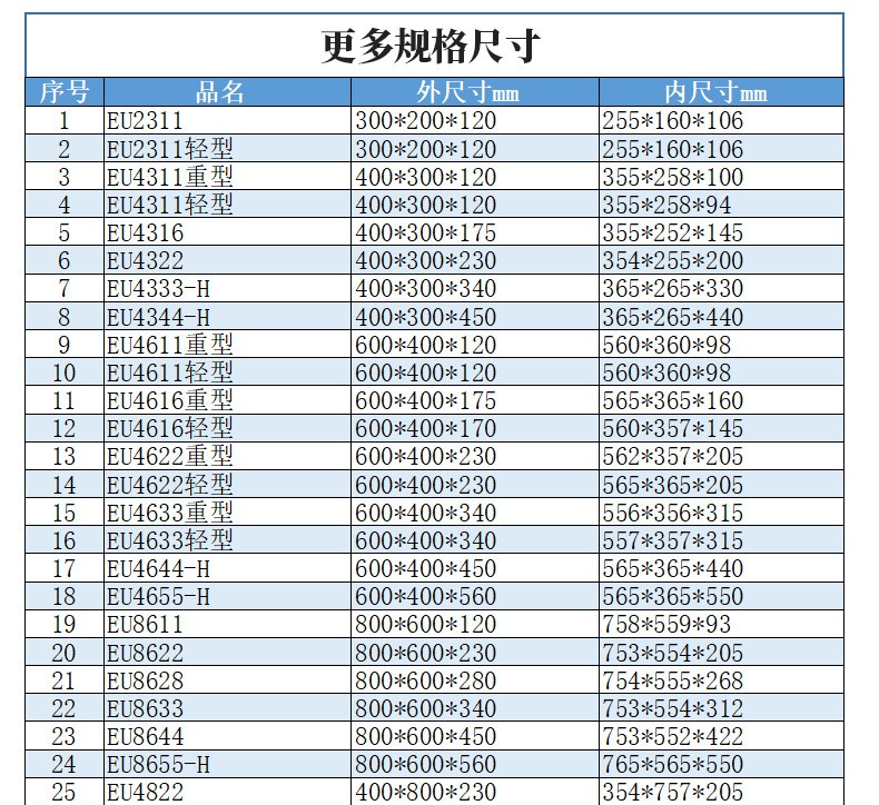 上一篇:東莞直營廠家eu箱汽配行業專用箱倉庫物流周轉箱加厚新料eu汽配箱
